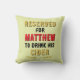 Cider drinkers will love this personalised cushion. The text on the front reads RESERVED FOR 'ADD NAME' TO DRINK HIS CIDER. All text is customisable, so you can change the message and add a name etc