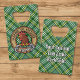 Le badge de la crête du coq Clan Currie entouré d'une sangle et survolez l'arrière - plan tartan. Texte personnalisé des deux côtés.