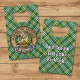 L'insigne de l'emblème du lion Clan Currie est entouré d'une courroie et passe au-dessus de l'arrière - plan tartan. Texte personnalisé des deux côtés.