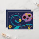 Eine lustige Cinco De Mayo Fiesta Party Einladung mit einem wunderschönen lila Schädel und Blume Weinreben in Mitternacht blau, türkis, lila und gelb. Kann mit Ihren Party-Details personalisiert sein.