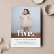 Une simple invitation de cinquième anniversaire avec votre propre photo et les mots 'cinq' en haut.