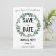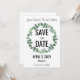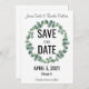Moderne und romantische Save the Date Karte. Personalisieren Sie mit Ihren Namen, Datum und Stadt. Bringt einen Hauch von Romantik mit Skript-Schriftart und weichen Eukalyptus, während das Mischen in einem modernen Gefühl mit Block-Schriftart.