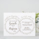 Zwei miteinander verflochtene Hochzeitsringe, die aus aufwändigen Rebsorten gebildet wurden, trennten die Veranstaltungsdetails in stilvoller englischer und hebräischer Kalligrafie dieser eleganten Einladungskarte, überragt von "Ich bin mein Geliebter und mein Geliebter ist mein", ebenfalls in beiden Kalligrafien geschrieben.