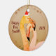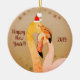 Schöne Neujahrsdekoration mit Flamingo-Vögeln, Weihnachtsmannmütze und Schneeflocken. Einfach angepasster Text und Jahr hinzufügen.
