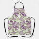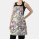 Diese Schürze hat eine geometrische Form von Kreisen mit Linien und Kreisen aus wiederholten Punkten in Auberginen und Grün dekoriert.
