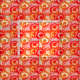 Dieser Stoff hat ein Design von Kreisen mit Linien und Kreise aus wiederholten Punkten in rot und orange dekoriert.