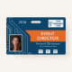Establish a commanding and professional presence at your next tech summit with this sleek, customizable Event Director photo ID badge. Designed specifically for the high-stakes environment of technology conventions, this horizontal credential features a striking modern circuit-board aesthetic that instantly identifies your leadership team. The intuitive layout allows you to maintain total brand consistency by uploading your official event logo, a high-resolution professional headshot, and up to three prominent sponsor logos directly onto the front of the card. Shown in a blue, orange, and white palette, but all colors are editable to match your branding.