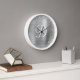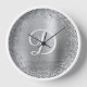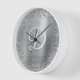 Imitate silberne kreisförmige Glitzer-Grenze und metallische silbergraue Folie digitale Kunst (Drucke wie ein Foto auf diesen Wanduhren). Passen Sie die Größe des Schriftartes des modernen weißen Kalligraphieskripts an. Fügen Sie einen Namen hinzu, um Ihr eigenes personalisiertes Monogramm-Design für sie zu erstellen.