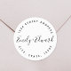 Maßgeschneiderte kreisförmige Rücksendeadressen-Aufkleber mit personalisierten Ehepaaren/Brauten und Bräutigamen in moderner Handkalligraphie. Ideal zum Dekorieren von Hochzeitsumschlägen, Geschenken, Favoriten, neuen Zuhause-Ankündigungen und vieles mehr!