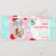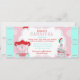 Fun Circus Elefant trägt einen Geburtstagsschmied, der über eine Kugelschablone zum Einlegen in das Foto mit Rosa-, Aqua- und Rot-Polka-Dot-Print und Lotterielos an der Seite balanciert. Für eine leichte Abreizung einfach die Seiten perforieren!