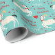 Hier ist ein lustiges Geschenkpapier, das einzigartig und auch hübsch ist! Es zeigt ein Muster von schwarz-cremefarbenen Zirkuspferden in volkstümlichem Stil. Die Pferde tragen rote Holiday-Kleidung und haben Herz und rote Punkte, die sie voneinander trennen. Zwei Textfelder sagen "Frohe Weihnachten" und "Happy New Year", aber der Text kann leicht auf alles geändert werden, was man möchte. Personalisieren Sie es, wenn Sie möchten! Alles ist auf einem aquamarin blauen grünen Hintergrund platziert. Feierlich!
