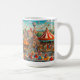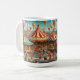 Kleine Zirkusparade im Herzen einer malerischen Stadt der 30er Jahre, mit Miniatur-Floats und Künstlern zu Fuß, mit der knechten, lebendigen Farbpalette und fetten geometrischen Formen, inklusive aufwändigen Details und einer reizvollen Verwendung von Perspektive, digitales Gemälde, hochdetailliert