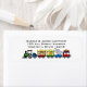 Farbenfrohe und lustige Zirkusbahn. Personalisieren Sie Ihre Daten mit Ihrem eigenen Namen und Ihrer eigenen Adresse oder fügen Sie eine spezielle Nachricht hinzu, um andere Elemente zu kennzeichnen.