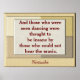 Et ceux qui étaient vus danser étaient considérés comme fous par ceux qui ne pouvaient pas entendre la musique. Affiche artistique Nietzsche - Imprimerie d'art