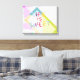Ce style moderne et coloré citation de la vie murale en toile est du texte doux a un design géométrique audacieux avec des formes rose, vert, bleu et violet. OEuvre murale pour décoration contemporaine à la maison ou au bureau.