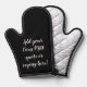 Mignonne ou amusante citation mitt au four. Inspirez-vous avec une citation ou un dicton inspirant, une excellente façon de vous encourager et de vous motiver autour de la maison dans la cuisine. Un arrière - plan noir avec une police blanche de style manuscrit fait un grand cadeau d'anniversaire pour les femmes, pour maman, patron, ou juste pour des rappels amicaux et la décoration de la maison pendant la cuisine, la cuisson, grillades sur le barbecue ou juste pour le plaisir.