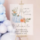 Un joli panneau d'accueil en acrylique gelé pour bébé garçon avec "Un petit Citrouille sucré est en route" dans la typographie moderne grise et un script chic avec un essaim de coeur, et aquarelles d'un citrouille bleu, fleurs et verdure. Personnalisez le nom de la mère et la date de la douche dans une simple typographie grise.