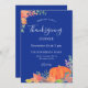 Famille Invitation et amis à votre fête spéciale avec cette invitation d'action de grâce brillante et colorée. Il est décoré de feuilles aquarelles aux couleurs de l'automne et d'un citrouille orange, sur un arrière - plan bleu profond. Customisez-le avec votre nom et vos coordonnées. Aquarelle originale © Michele Davies.