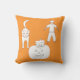 Dessin d'un chat, d'un chaton dans un citrouille, et d'un épouvantail, sur un arrière - plan orange, imprimé sur des coussins personnalisés, pour la décoration d'Halloween. La couleur arrière - plan peut être customisée. Merci pour faire du shopping à CherylsArt sur Zazzle.