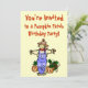 Une mignonne invitation de fête d'anniversaire de patch citrouille avec un épouvantail et citrouilles. Customisez avec vos propres détails.