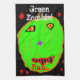 Effrayant Citrouille vert Zombie avec yeux jaune rouge, nez violet, tige brun et le regard de sang rouge chute sur l'arrière - plan noir et le libellé, Green Zombie Run. Serviettes de cuisine Festive Halloween pour ajouter un peu de plaisir à votre décor de vacances. Oeuvre Graphique originale design peint à la main et texte dit par notre fils © TamiraZDesigns. Tous droits réservés.