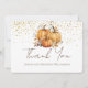 Une magnifique carte de remerciement sur le thème des citrouilles d'automne. Cette invitation fabuleuse présente des citrouilles rustiques d'automne avec des feuilles dans des tons bruns et orange chauds et terreux. Facile à personnaliser avec vos propres détails de mariage, d'anniversaire ou d'autres remerciements.