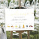 Stilvolles französisches Lemon und Orange Aquarell Zitrusfrüchte Hochzeitstag Timeline Schild mit Begrüßung in Goldfolie. Einzigartige Aquarellmalung von Orangen und Orangensegmenten mit grünem Blattwerk und gelben Zitronen auf einem Zweig mit Grünflächen und Zitronensegmenten. Einfach zu gestylte dunkelgraue Typografie-Skript mit dem Namen der Braut und der Bräuche, dem Hochzeitstag und Ihrer eigenen Begrüßungsbotschaft anpassen. Original-Kunstwerk von Catherine Sweetman