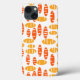 Dieses Gehäuse hat ein sich wiederholendes Ovalmuster in Retro-Orange und Gelb mit verstreuten weißen Ovalen auf einem Feld von Weiß.