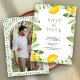 Erleben Sie Ihren Gast mit diesem eleganten Save the Date mit schönen Zitronen und rustikalen Blätter aus Blättern mit moderner Typografie. Fügen Sie einfach Ihre Veranstaltungsdetails zu dieser leicht zu bedienenden Vorlage hinzu und schmücken Sie diese Karte mit Ihrem bevorzugten Foto, um sie zu einer einmaligen Save the Date-Karte zu machen.