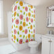 Cooles Design mit Retro-Touch mit stilisierten Zitrusfrüchteschnitzeln - Orange, Zitrone, Limone und rosa Grapefruit, auf weißem Hintergrund. Duschvorhang personalisierbar für Sie, um mit Ihrem eigenen Text, Bildern und Ideen zu personalisieren. Ein originales digitales Kunstbild von QuirkyChic.