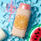 Vergnügen Sie sich mit orangefarbenen Zitrusfrüchten auf einem rot-rosa Hintergrund. Ideal für Feinschmecker, gesunde Esser, Cafés, Restaurants und alle, die Lieben kochen. Holen Sie sich ein visuelles Vitamin C. Originelle Kunst von Nic Squirrell.