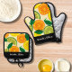 Citrus Pattern Green Orange Lemon Personalisiert Ofenhandschuh & Topflappen-Set