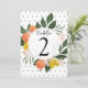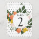 Tischnummer im zitrusförmigen Kranz mit Pflanzen, Orangen und Zitronen. Die Tischnummer wird auf Vorder- und Rückseite gedruckt (doppelseitig). Die Artikel werden genau so gedruckt, wie sie auf dem Bildschirm erscheinen, wenn Sie sie zum Warenkorb hinzufügen, sodass Sie jede Tischnummer, die Sie benötigen, individuell anpassen und hinzufügen können.