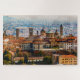 Panoramaaussicht auf die Altstadt (Citta Alta) in Bergamo mit historischen Gebäude. Zeichnung mit Farbstift.