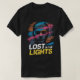 Urban abstract t-shirt design featuring chaotic textures, blurred brickwork, and spray effects, with a hidden face subtly blended into the background. The bold text “Lost In The Lights” stands out in true street style.
