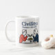 Civilité : Parce que pourquoi pas ! Commencez votre journée avec du café et un petit espace commun. Cette tasse présente un design léger de deux personnes - clairement différent, heureux de partager des frites - et le rappel audacieux mais doux que la civilité n’est pas dépassée, elle est sous-estimée. Parfait pour les routines matinales, les bureaux, ou tout espace où un peu de grâce peut aller loin. Que vous sirotiez en solo ou que vous parliez à travers le fossé, cette tasse la garde civile (et caffeinée).