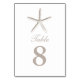 Clair Brown Starfish Beach Wedding Numéro de table Cartes de table.