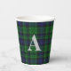 Karierte Papiertasse mit dem traditionellen schottischen blauen und grünen Klan Abercrombie Tartan kariertes Muster. Personalisieren Sie das große hellgraue Monogramm mit einem Buchstaben, um Ihre Bedürfnisse Anzug. Passende Servietten und Teller sind erhältlich.