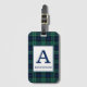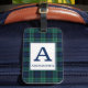 Gepäckanhänger mit dem Familientartan von Clan Abercrombie, einem traditionellen schottischen karierten Muster aus dem Jahr 1805 in dunkelkönigsblau, schwarz und waldgrün mit weißen Akzenten. Personalisieren Sie Ihren Vor- und Nachnamen auf einer hellen Platte, um die Lesbarkeit zu erleichtern.