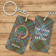 Le badge de crête Clan Anderson entouré d'une courroie et boucle sur l'arrière - plan tartan. Texte personnalisé des deux côtés.