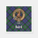 Clan Baird Wappen Abzeichen umgeben von einem Gurt und Schnalle über Tartan Hintergrund. Eigener Text.