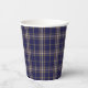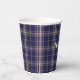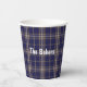 Karierter Papierbecher mit dem traditionellen schottischen blauen, bräunlichen und grauen Klan Baker tartan karierten Muster. Personalisieren Sie den benutzerdefinierten Weißtext, um Ihre Bedürfnisse Anzug. Passende Servietten und Teller sind erhältlich.