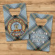 Clan Bell Wappen Abzeichen umgeben von einem Gurt und Schnalle über Tartan Hintergrund. Benutzerdefinierter Text auf beiden Seiten.