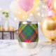 Clan Buchanan badge crête entouré d'une sangle et boucle sur l'arrière - plan tartan. Texte personnalisé des deux côtés.