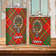 Clan Cameron Wappen Abzeichen umgeben von einem Gurt und Schnallen über Tartan. Eigener Text.