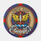 Clan Carnegie Wappen Abzeichen umgeben von einem Gurt und Schnalle über Tartan Hintergrund. Eigener Text.