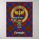Clan Carnegie Wappen Abzeichen umgeben von einem Gurt und Schnalle über Tartan Hintergrund. Eigener Text.