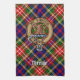 Clan Christie crest badge surrounded by a strap and buckle over tartan background. Custom text.
