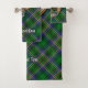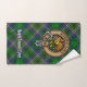 Clan Cockburn insigne crête entouré d'une sangle et boucle sur l'arrière - plan tartan. Texte personnalisé sur chaque serviette.