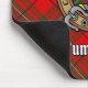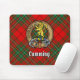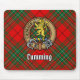 Clan Cumming Wappen Abzeichen umgeben von einem Gurt und Schnalle über Tartan Hintergrund. Eigener Text.